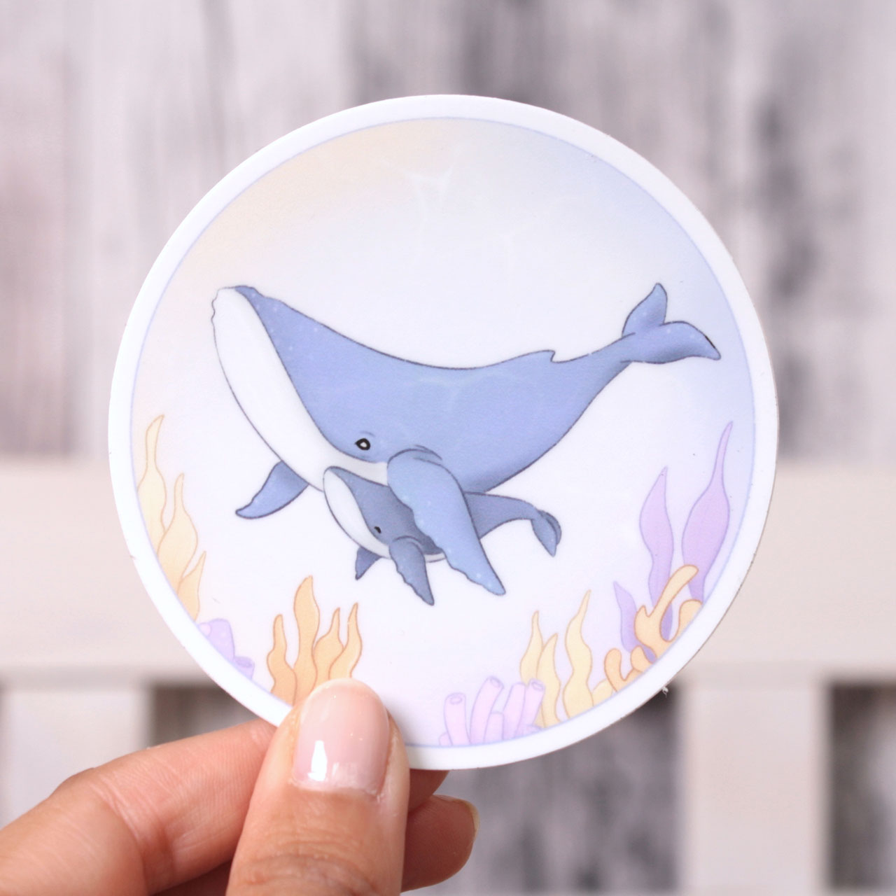 Den Weltraum-Wal habe ich digital gezeichnet, bevor er als langlebiger Vinylsticker umgesetzt wurde. Ein wunderschöner Akzent, um deine Gegenstände individuell und kreativ zu gestalten!